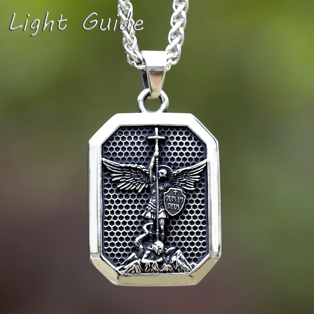2024 NEW Arch Angel St.Michael Amulet Men Necklaces Stainless Steel Pendants Chains Women Jewelry Vintage Accessories Only Pendant – Sumsfashion